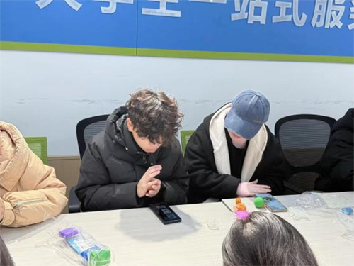除了粘土创作,猜灯谜、脑筋急转弯、“不能说”挑战等趣味游戏轮番上演。灯谜区里,同学们对着写满冬至民俗、诗词的谜面苦思冥想,不时传来猜对谜底的欢呼;“不能说”挑战中,大家巧妙规避禁忌词完成对话,现场笑声不断。多样的互动形式让同学们在轻松愉悦的氛围里,沉浸式感知了冬至节气的文化内涵。