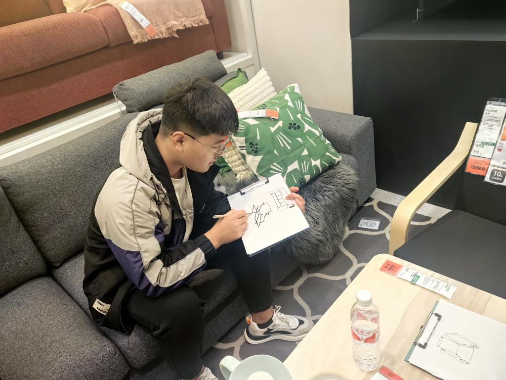 活动现场,学生们专注于描绘宜家家居丰富多样的室内场景与产品陈列,不仅提高了绘画水平与艺术修养,更对建筑空间的设计与营造有了更为直观和深入的认识,为今后的专业学习打下坚实的基础。