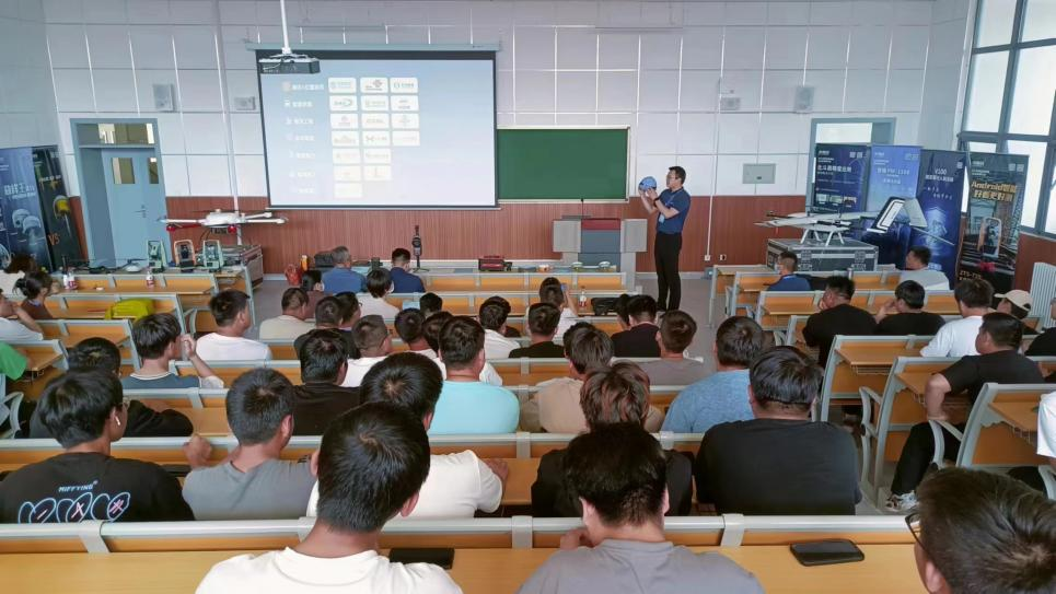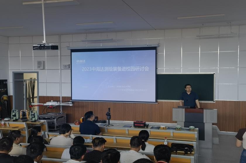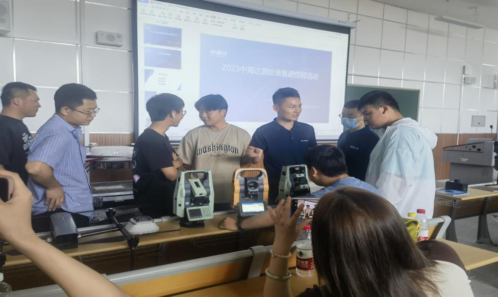 中海达西北大区总经理彭献亚向师生介绍了中海达公司的发展、业务领域以及交通行业无人机、RTK等仪器的使用范围。技术经理张康和李翔凤分别就三维测绘装备行业应用和北斗高精度应用方案(智慧施工)向师生详细介绍了测绘行业新技术及其应用情况。在活动现场,中海达公司展示了其最新产品,包括全站仪、三维激光扫描仪、RTK、无人机等。在场学生也对先进仪器的业务前景、技能认证、操作方法产生了浓厚的兴趣,纷纷与工作人员进行交流。