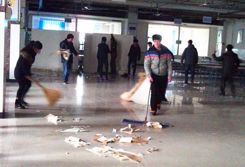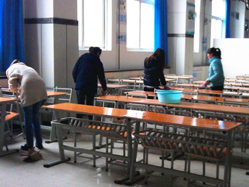 同学们在辅导员老师的安排和分配下,有秩序地进行着新实训基地的整理和清扫工作,有的整理废弃的杂物,有的搽掉厚厚的灰尘,有的排放桌椅……,好一团忙碌的景象。经过一个多小时的忙碌,实训基地在学生和老师共同的努力下,已经焕然一新了。