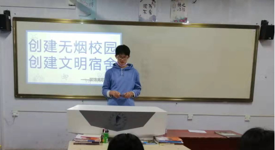 为加强宿舍管理,创建文明校园,10月25日晚自习,建筑各班组织召开了“创建无烟校园,创建文明宿舍”主题班会。班会上,同学们集体学习了校园禁烟规定和创建文明宿舍要求,倡导全体学生每天保持宿舍整洁卫生,养成健康文明的生活习惯。