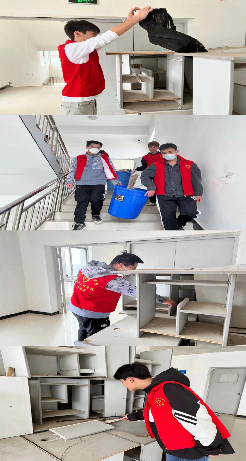 此次活动由党员教师、学生会干部以及入党积极分子组成青年志愿小分队,他们分别对网格化管理区域以及教学楼的楼道、卫生间等公共区域进行清洁打扫。清理白色垃圾、捡拾烟头、清扫花园、整理摆放自行车等,重点是对教学楼、雨水篦等死角区域进行了仔细的清扫。