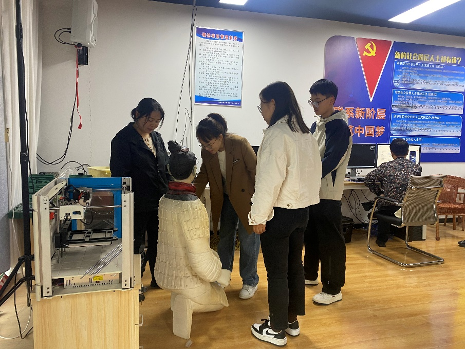 在3D打印基地,参观了先进的3D打印设备和技术展示区,了解了3D打印技术在文化遗产保护领域的应用。随后,在基地技术人员的指导下,师生们亲手操作了3D打印机,将一系列代表传统文化元素的模型进行了数字化扫描、建模和打印,在实践教学过程中,学生们积极参与,深入探讨了如何将传统文化元素与现代科技相结合,将我市古建筑、古村落文化遗产进行全面的数字化存档,助力我国文化遗产的保护与传承。