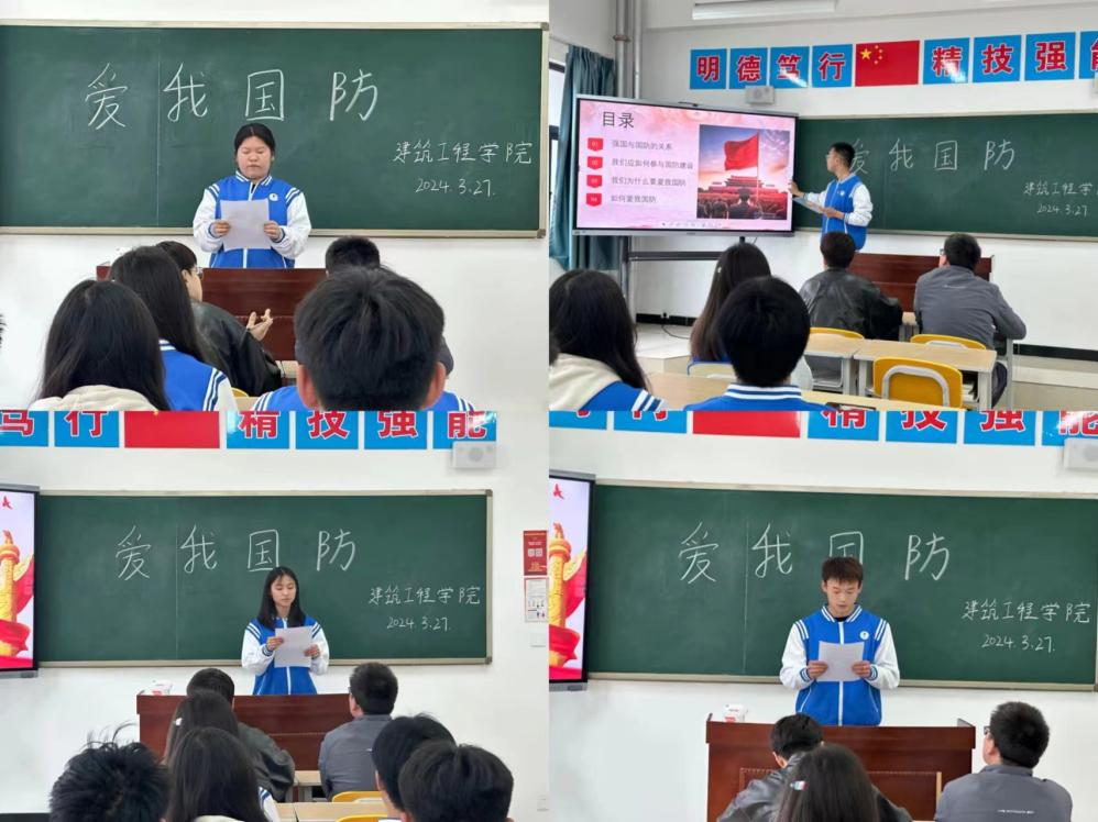 为贯彻落实习近平总书记关于加强全民国防教育的系列重要指示精神,全面贯彻党的教育方针,激励广大学生赓续红色血脉,致敬人民英雄,厚植爱党爱国精神,点燃强军梦想,金年会官网于2024年3月27日下午在建工楼举办了“爱我国防”演讲比赛。