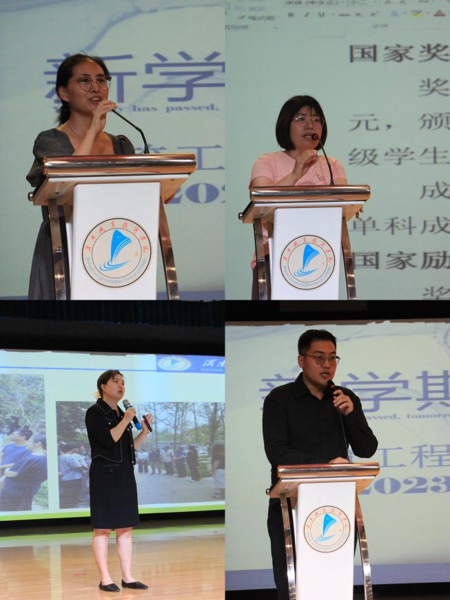 见面会第二阶段,教师代表王宁宁、黄天奕通过理论讲授、案例分享等形式,为新生讲解专业学习方面知识,她们提到要抓紧一切学习的机会,利用好时间及资源,打好专业基础,提升综合素质,让自己得到真正的成长与蜕变;梁艳绒老师全面细致地为新生讲解了包括奖助学金申请、助学贷款等系列资助政策;学生科副科长李一峰从制度管理、公寓管理、学生活动等多个方面进行讲解,帮助2023级新生尽快适应大学的学习和生活,进一步了解所学专业;会议最后,由书记周晓燕进行总结发言,她勉励全体新生要笃定人生目标,脚踏实地走路,砥砺人生修养,走好人生第一步,希望各位同学立足实际、找准定位,树立理性目标,不断增强实力,实现自身理想,为大学生活铺叙新的华章。