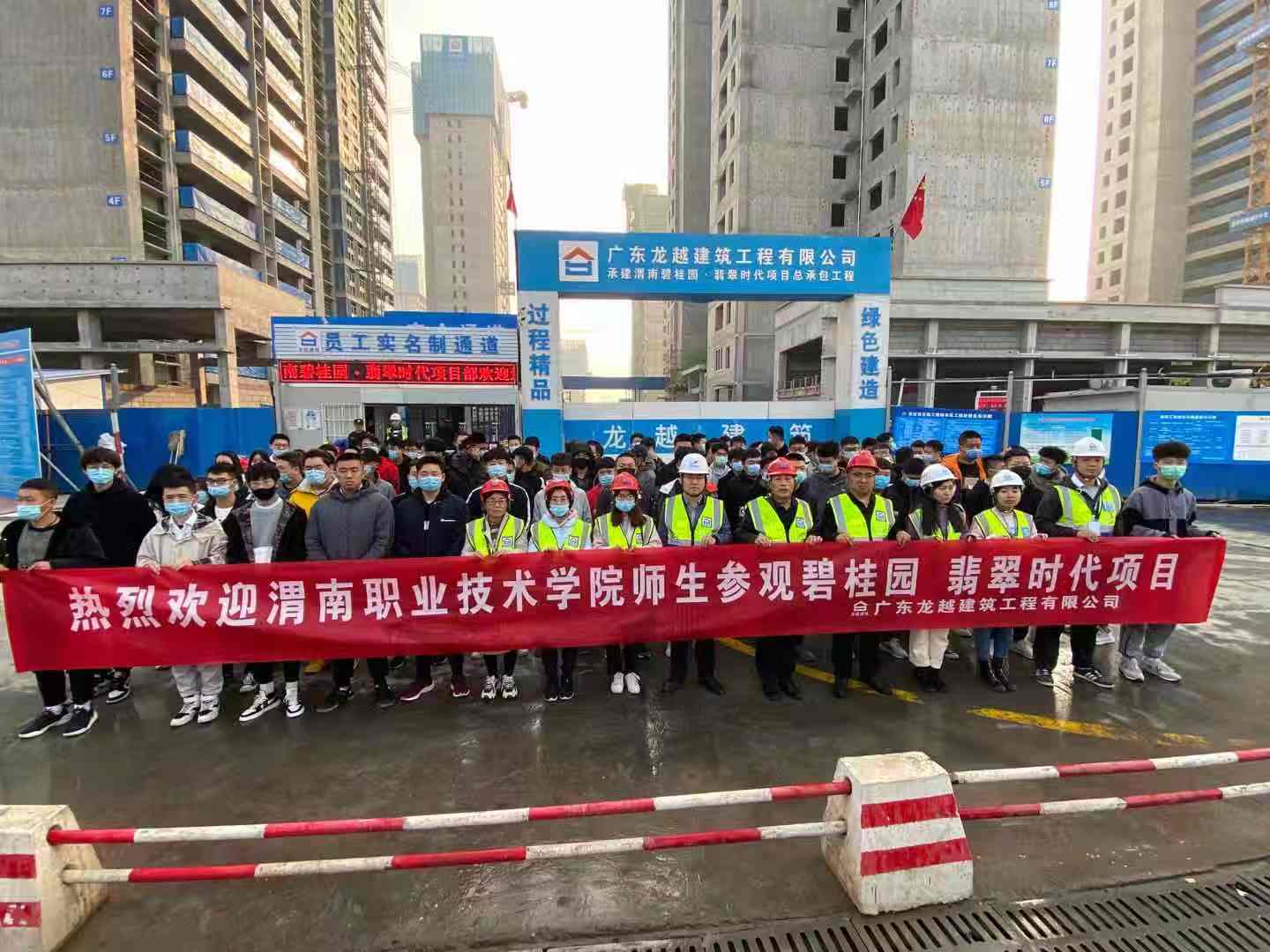 11月11日上午,金年会官网专业教师王伟芳、王宁宁、李小林,校企合作方办公室主任梦新锋,带领建工高职1901,建工五高1801,建工五高1701以及建管高职1901前往渭南碧桂园时代项目参观学习,师生共计一百余人。