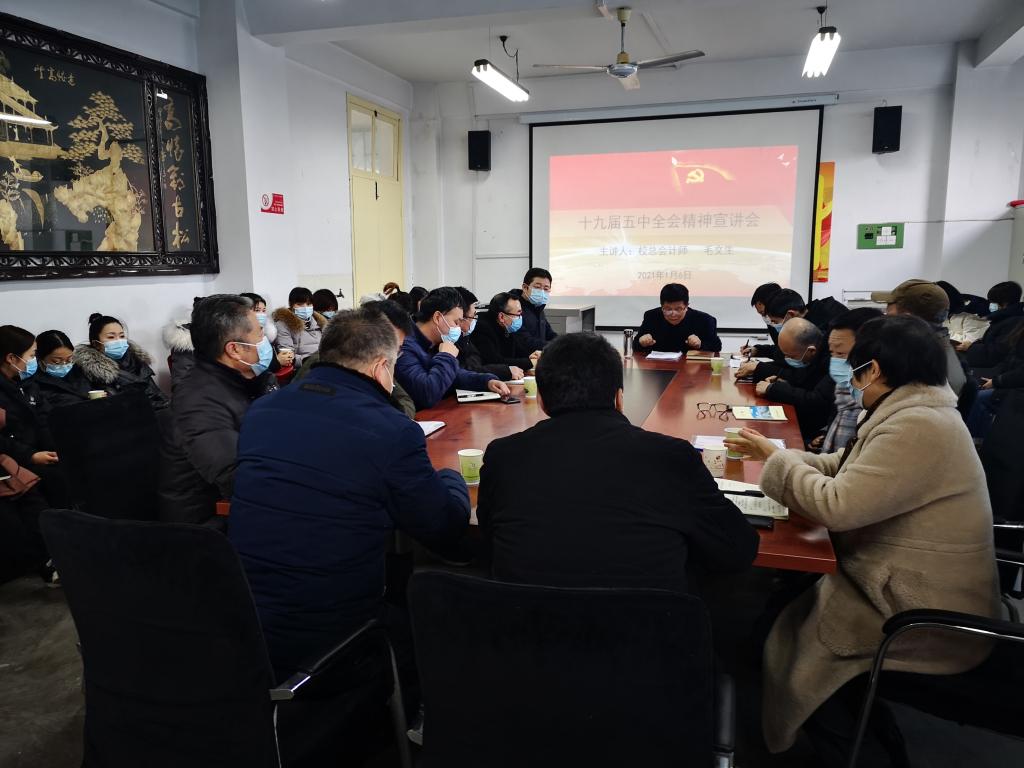 1月6日下午在建工楼206会议室,金年会总会计师毛文生宣讲党的十九届五中全会精神。会议由建工学院党总支副书记、院长孙志强主持,参会人员为计财处、基建处、国资处、附属医院、建工学院的党员职工。