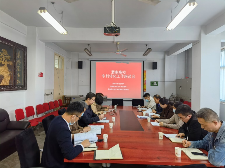 2022年4月2日下午,渭南市市场监管局知识产权服务中心副主任贺延、渭南市临渭区市场监督管理局副局长张丽燕等一行6人到金年会金年会官网会议室就高校专利转化工作进行座谈、调研。学校建工学院相关负责人及姚立民、张银环、薛静云3位博士进行了座谈交流。