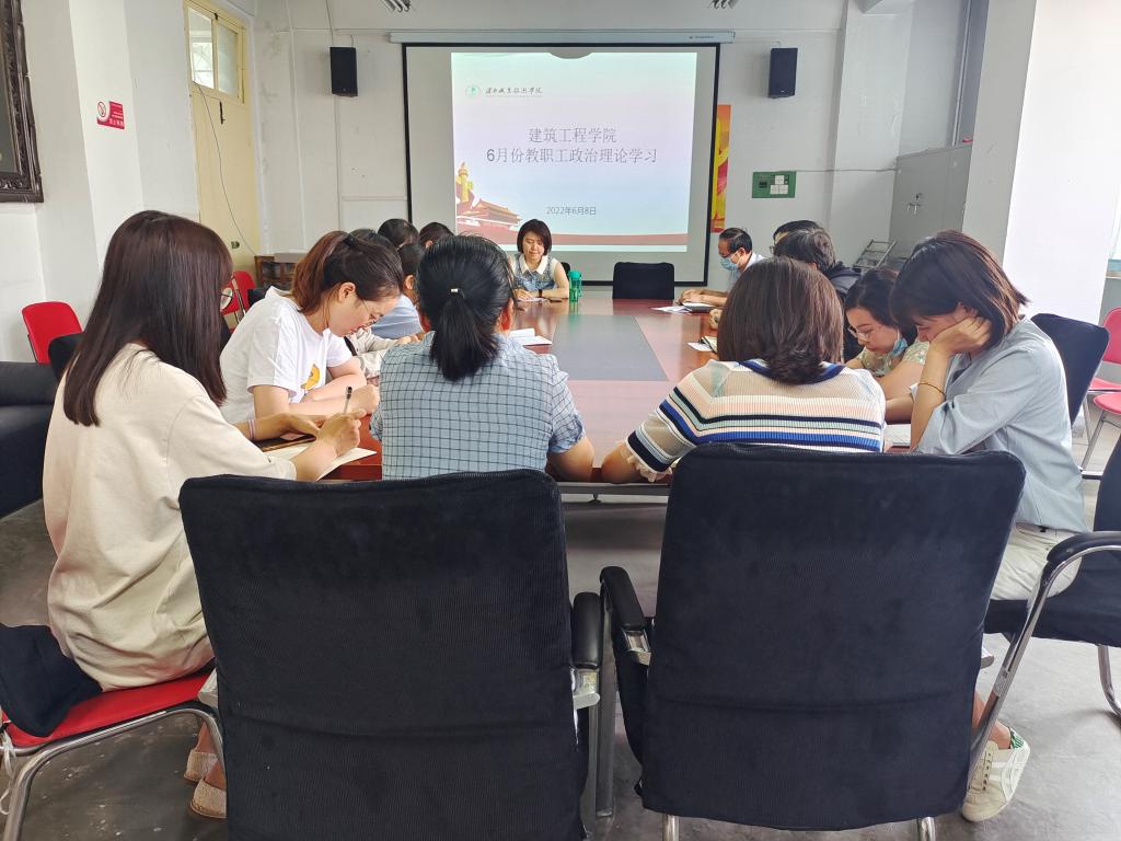 6月8日下午,金年会官网在朝阳校区建工楼206会议室,开展了6月份教职工政治理论学习,会议由党总支书记周晓燕主持,全体教职工参加了学习会。