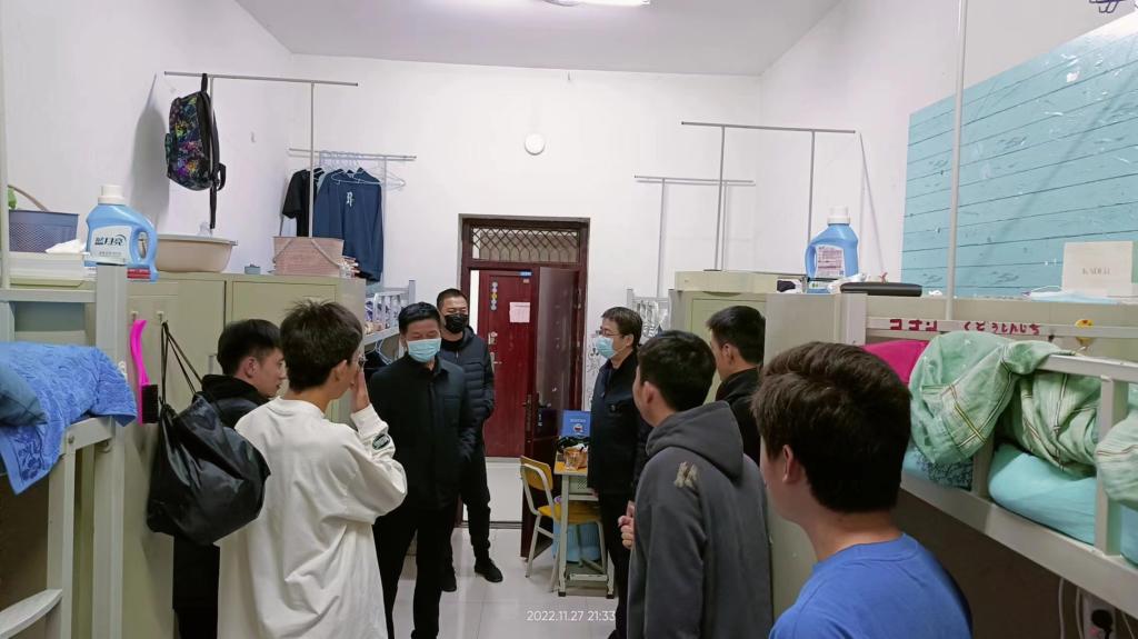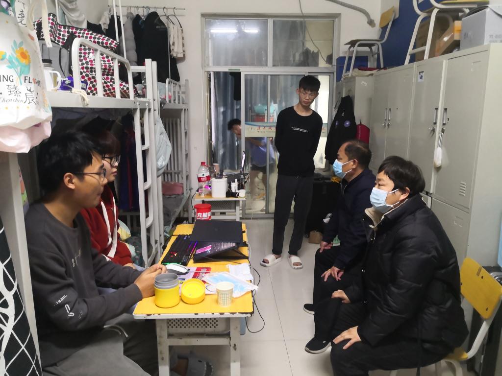 走访过程中,各领导干部及辅导员与学生进行亲切的交谈,询问了同学们在宿舍学习及日常生活中遇到的困难并给予了相关建议。叮嘱同学们当前处于疫情期间,要遵守疫情期间学校各项防疫制度,有困难及时向老师们反映,并要求同学们认真打扫卫生,及时清理垃圾,保持宿舍干净并注意个人卫生,不使用大功率电器、不私拉乱接电线,遇到问题及时上报,并希望同学们继续保持高昂的学习的状态,以乐观的态度和饱满的精神投入到疫情背景下学习和生活中。