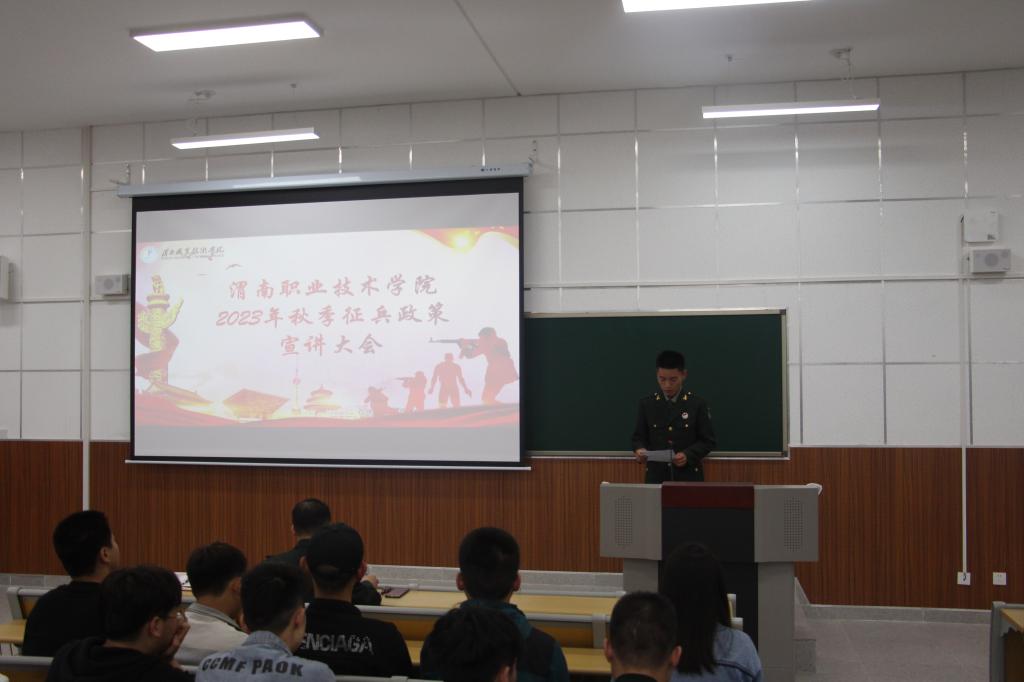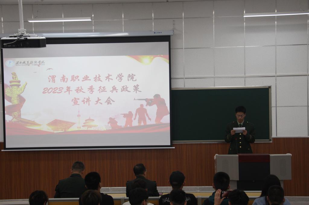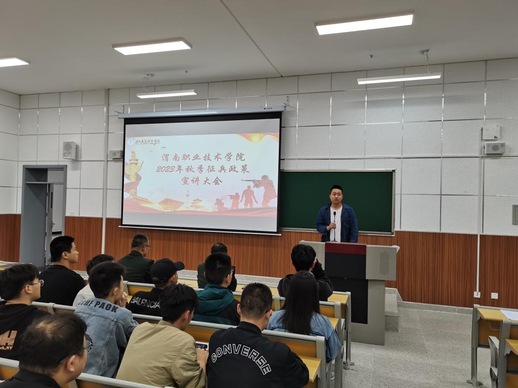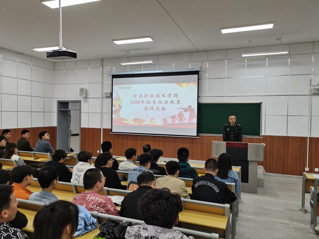 接着,赵国辉详细解读了在校大学生应征入伍的各项政策,他以算好“前途账、政治账、健康账、经济账”为切入点,重点阐述了学生入伍的十大好处,并用详实数据和生动案例,全面介绍了征兵安排、应征条件、入伍流程、优待政策等相关情况,还对报名时间、入伍后待遇及未来职业发展等学生关注的问题进行了认真讲解。他强调,传承红色信仰,肩负崇高使命,依法服兵役踊跃参军报国,为实现党在新时代的强军目标而努力奋斗是当代大学生义不容辞的历史使命。年轻的生命应披荆斩棘,无悔的岁月该浴火而生,将红色热血汇入祖国河山,携笔从戎,追逐梦想。他希望同学们积极响应党和国家的号召,充分发扬爱国拥军的优良传统,努力为部队输送新鲜血液,矢志奋斗,淬火成钢,参军报国,不负韶华。赵处长的宣讲内容丰富、深入浅出,激发了莘莘学子参军报国的热情,同时也饱含对青年学子立志军营成才的殷切希望。