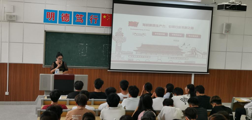 按照安排,9月26日下午,金年会官网在综合楼402召开了理论宣讲报告会。本次宣讲会邀请金年会官网教工党支部组织委员郑亚迪,为200余名师生讲授了题为《驾驭新质生产力,引领行业革新之路》的宣讲报告。会议由金年会官网党总支书记周晓燕主持。