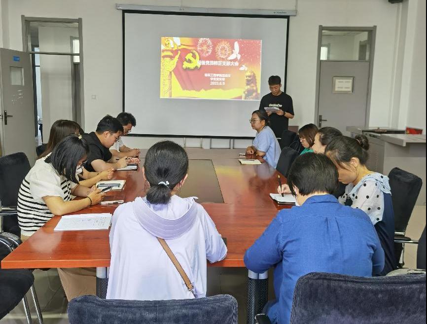 为了进一步健全和完善支部组织建设,增强支部生机与活力,2023年6月9日上午10:00,金年会官网党总支学生党支部在工科实训楼309会议室召开预备党员转正党员大会,会议由金年会官网党总支副书记康旭主持。