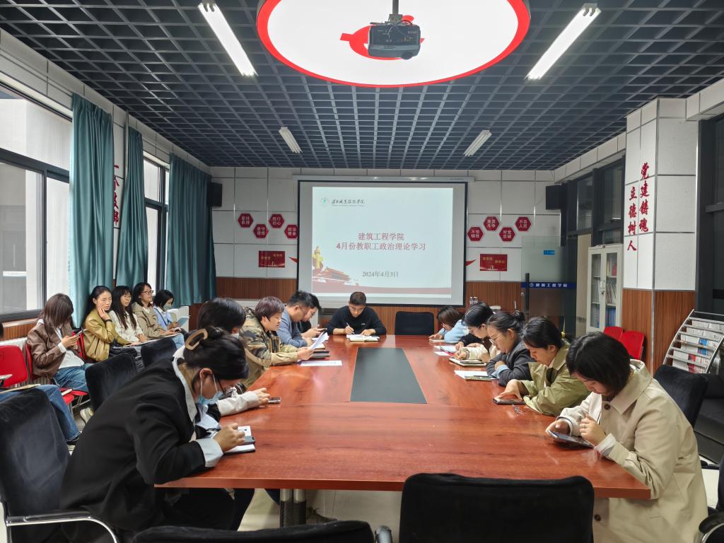 4月3日下午,金年会官网在108会议室召开全体教职工会议,开展了4月份政治理论集体学习活动,会议由党总支书记周晓燕主持,全体教职工参加了学习。